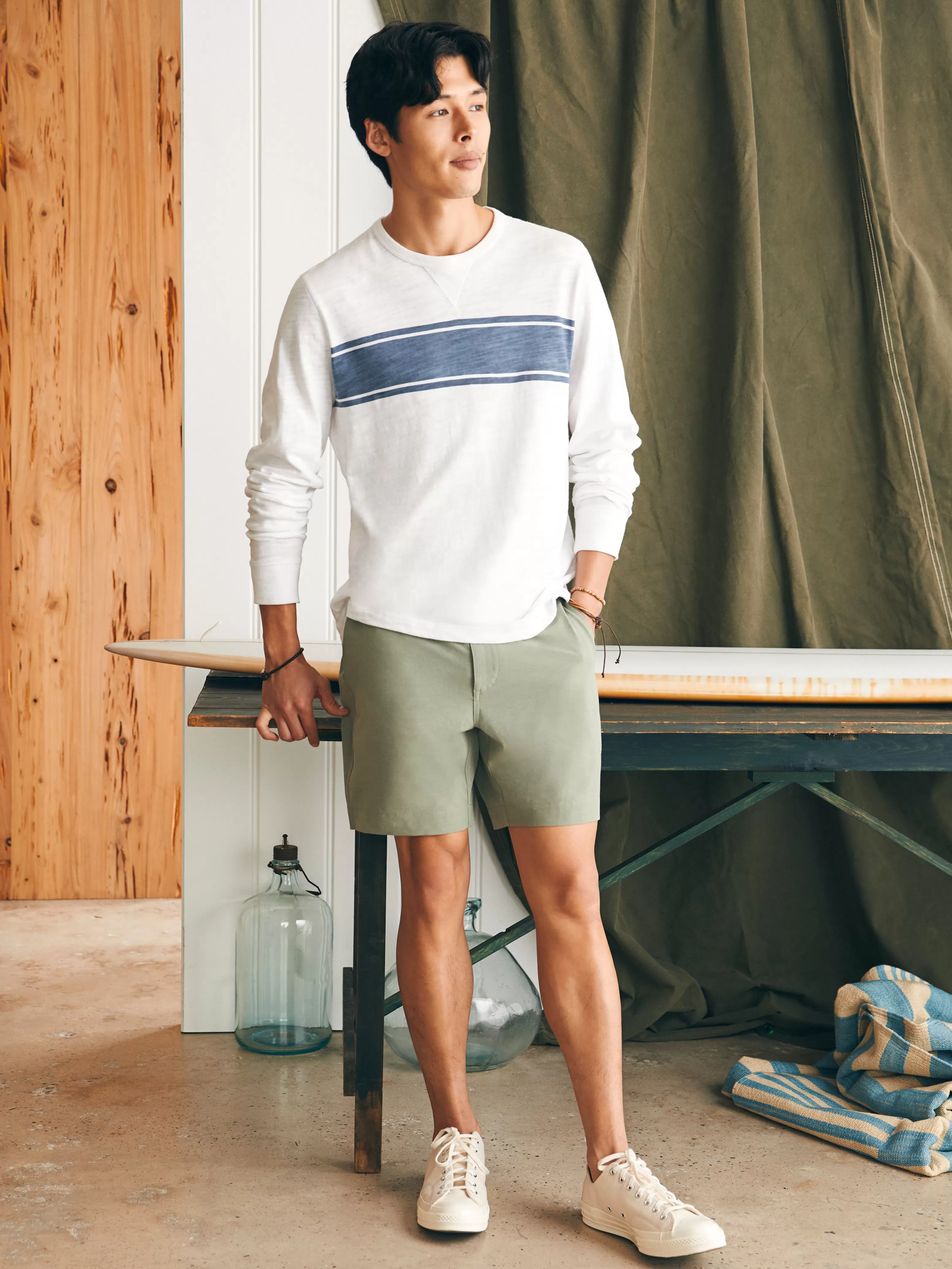 Our slub knit fabric is crafted from high-quality grown cotton and combed for exceptional texture and softness. The perfect layer does all the work of a sweatshirt — featuring a classic relaxed fit, knit ribbing at the collar, cuffs, and hem — without the added weight. Get one, and feel what we’re talking about.